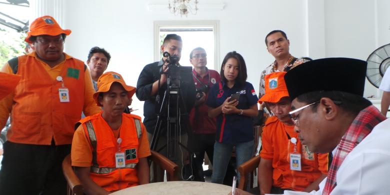 Sekitar delapan pekerja harian lepas (PHL) Suku Dinas Kebersihan Jakarta Timur mengadu kepada Pelaksana Tugas (Plt) Gubernur DKI Jakarta Sumarsono, di Balai Kota DKI Jakarta, Rabu (11/1/2017). Mereka mengadu karena diberhentikan secara sepihak.